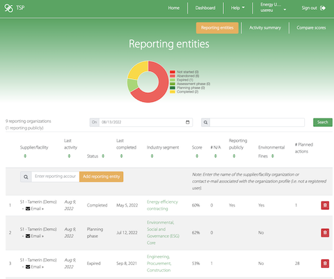 A current or prospective client/customer/investor is using TSP as their platform for evaluating supplier maturity in environmental management (e.g. as part of an RFP process, or a socially responsible investment strategy).