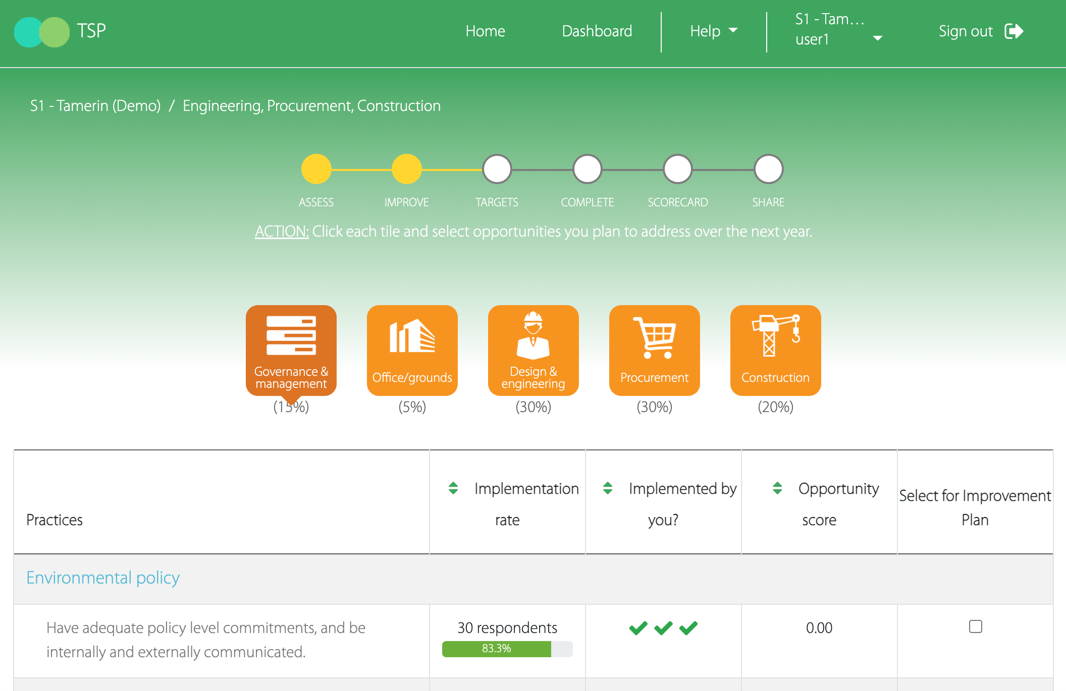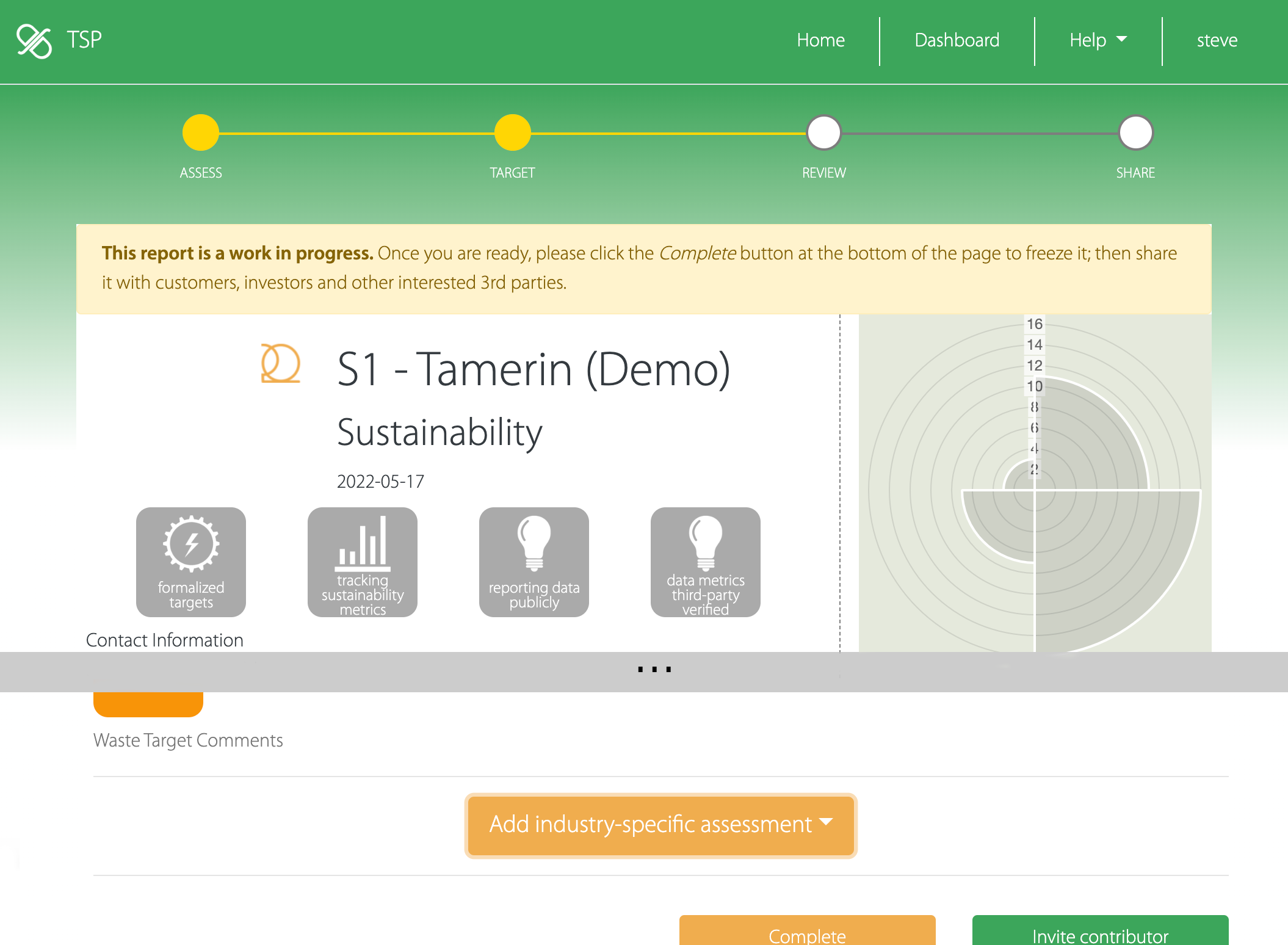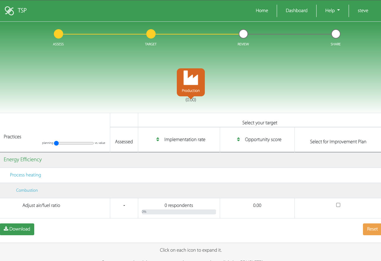 To use TSP to create an improvement plan, you need to add an industry-specific practices section to the report, then go to the Targetstep.
