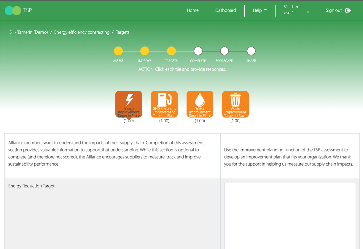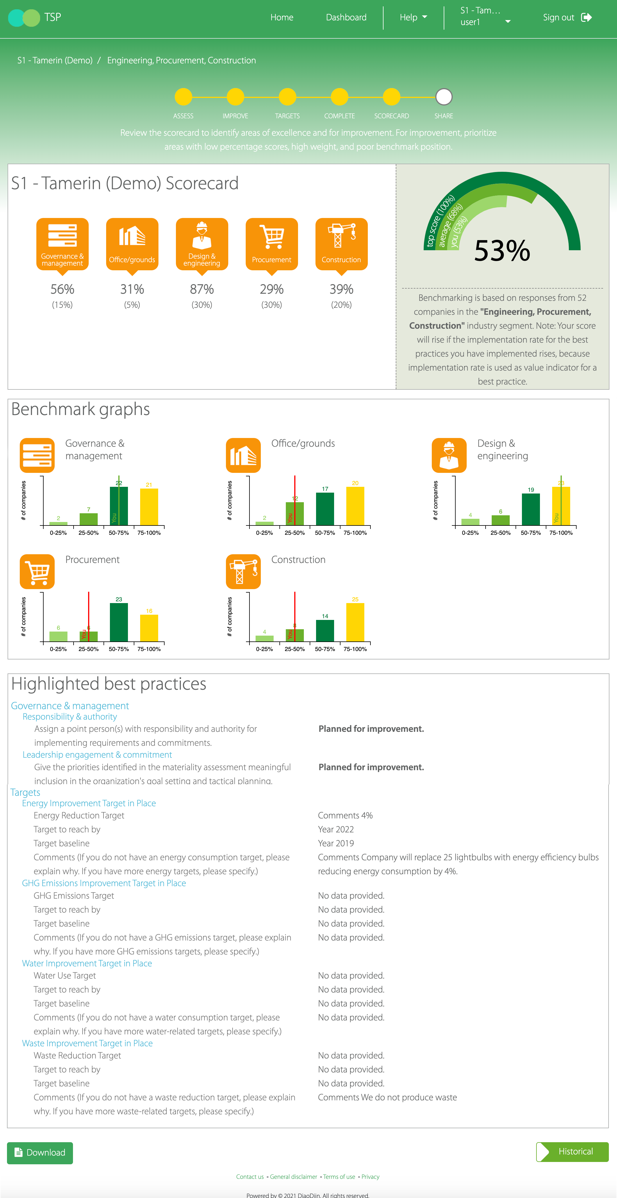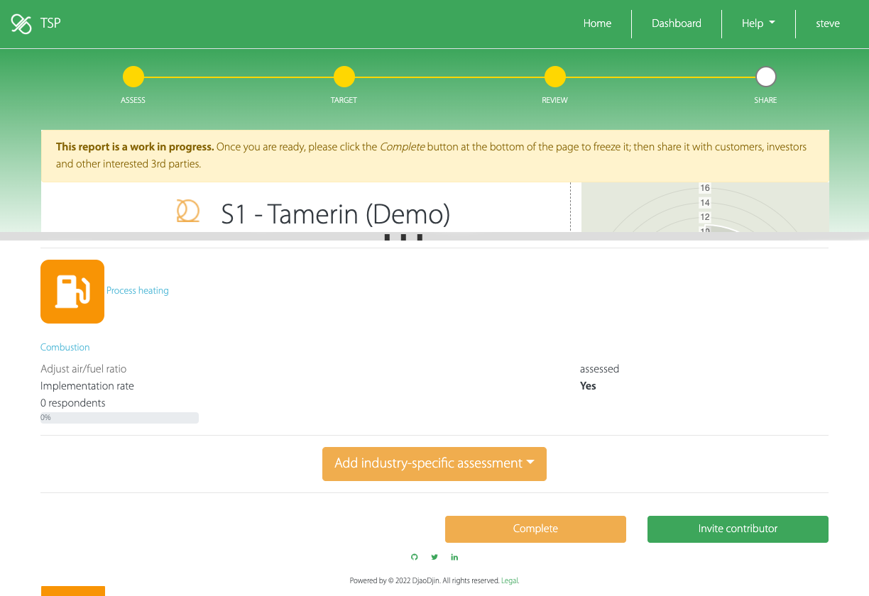 To use TSP to create an improvement plan, you need to add an industry-specific practices section to the report, then go to the Targetstep.
