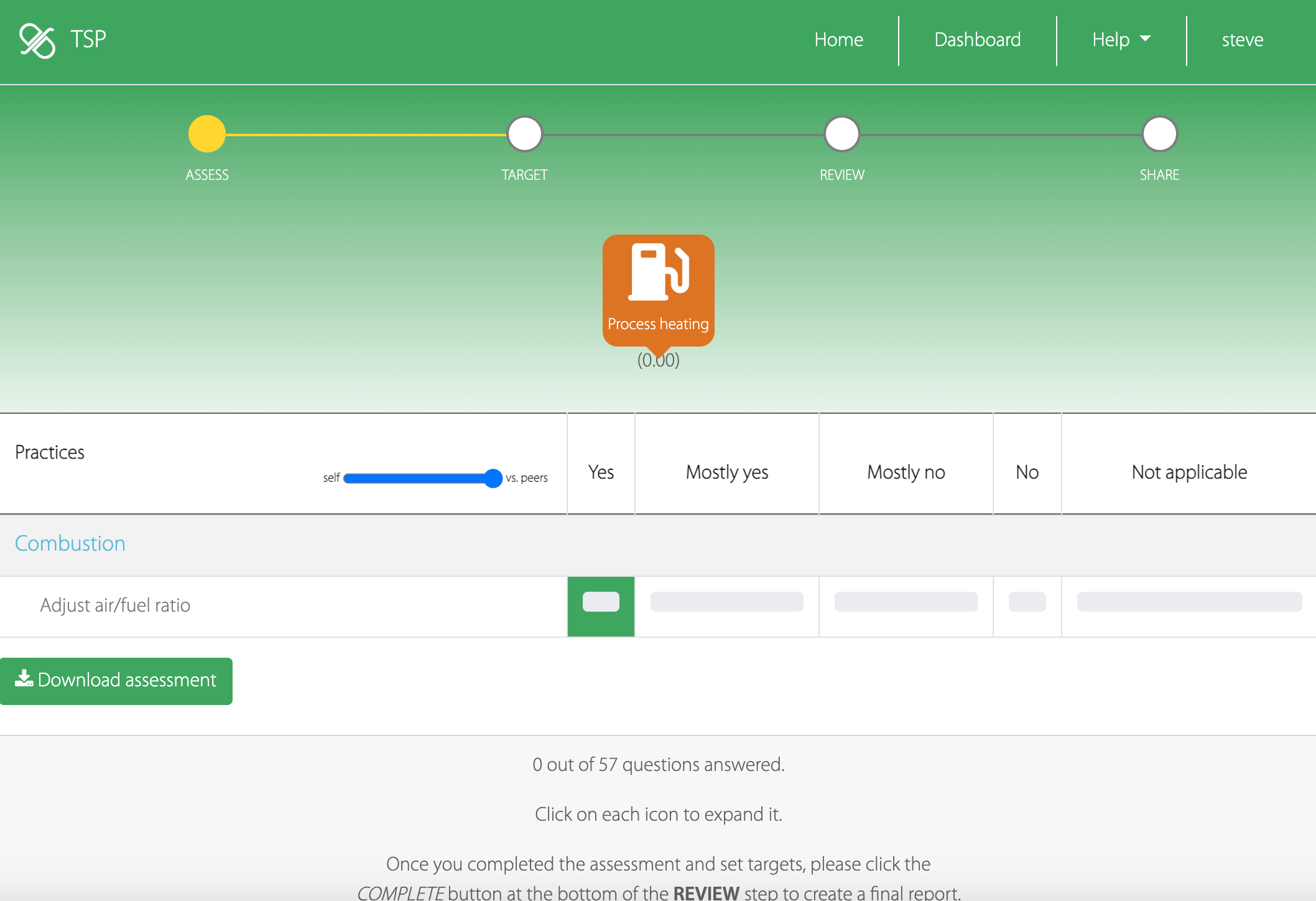 The toggle between answering the assessment and seeing the intrinsic value of each practice has moved from the bottom of the page to the table header Since the table header sticks to the top of the page when you scroll down, this makes it easier to toggle back and forth.