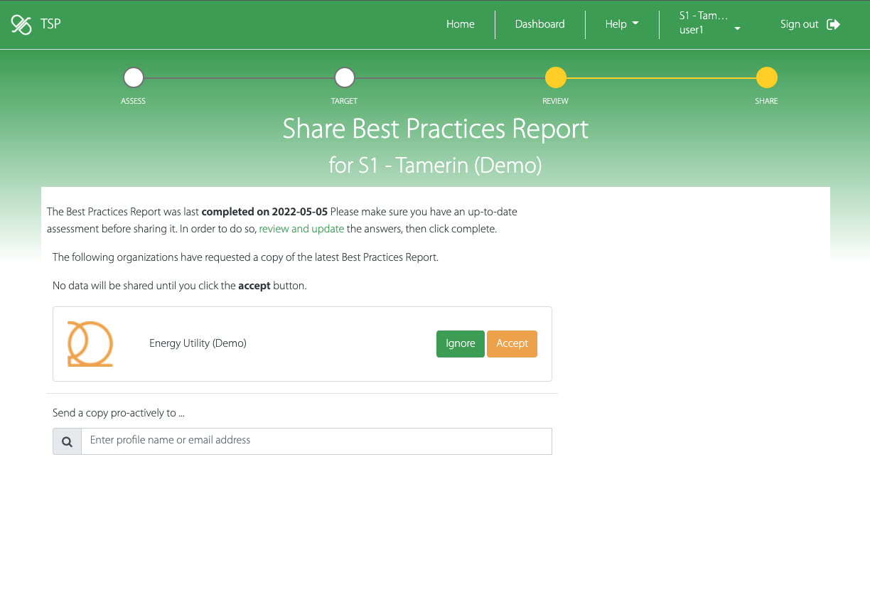 While you previously landed on the assess page for the industry segment practices you had previously selected, you will now land on the report review page.
